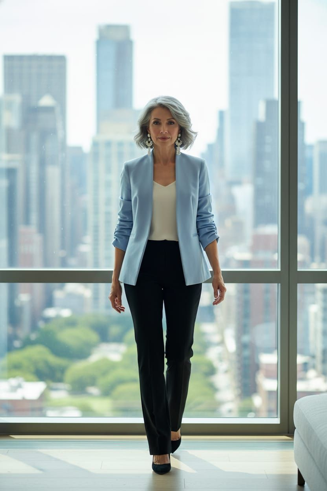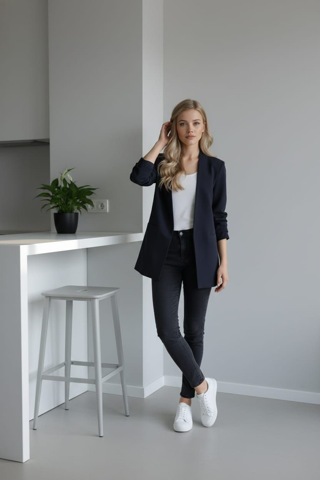 Lockerer Blazer-Schnitt (Achsel-zu-Achsel 55 cm, Länge 77 cm) mit figurbetonenden Linien – vielseitig zum Layering über Blusen oder Kleidern, ideal für Business bis Casual.​