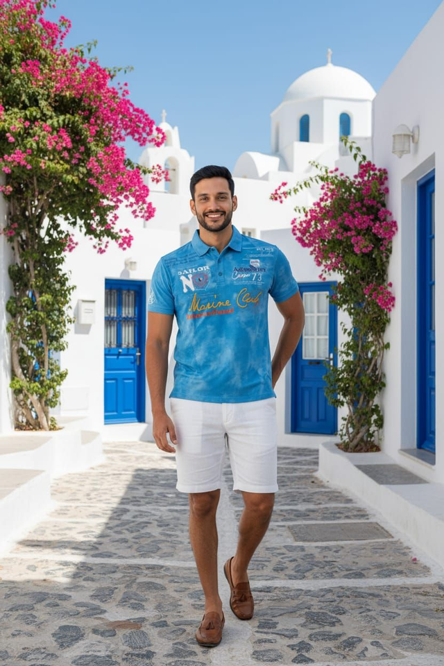 Dieses Herren T-Shirt mit Kragen "Marine Club" in mediterranem Blau bringt nautischen Sommer-Vibe und smarten Casual-Stil in deine Outfits. Aus hochwertigem Material gefertigt (Gr. XXL, Brustweite 76cm AA, Länge 75cm), fühlt es sich weich, atmungsaktiv und formstabil an. Ideal für Urlaub oder Streetwear mit abenteuerlichem Lifestyle-Feeling.