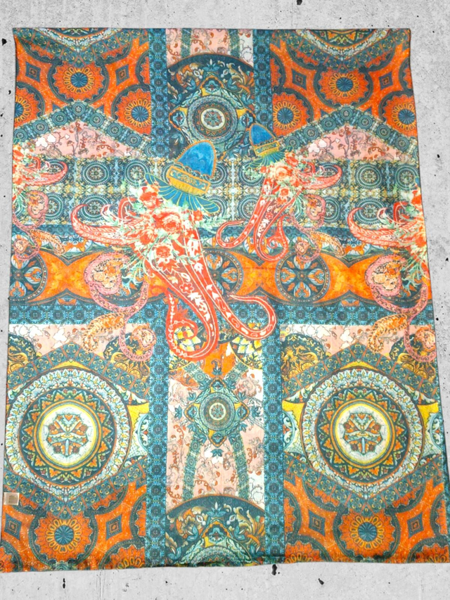 Paisley-Muster in Grün, Türkis, Orange und Gelb für Statement-Effekt; Enden mit Fransen für doppelten Style-Wechsel. Cleanes Finish, elegant um den Hals gewickelt.