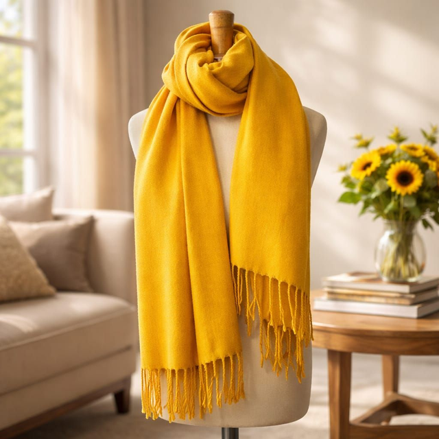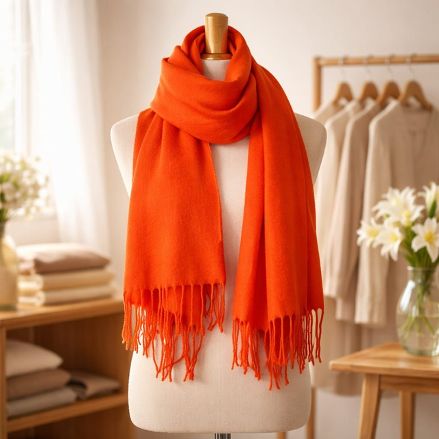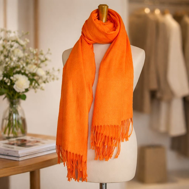 Kuscheliger Longschal aus 70% Viskose & 30% Wolle, der sich wie Cashmere anfühlt – weich, warm und super vielseitig. Verfügbar in leuchtenden Farben: Grün, Blau, Rot, Orange und Gelb – mit stylishen Fransen am Ende für extra Schwung.