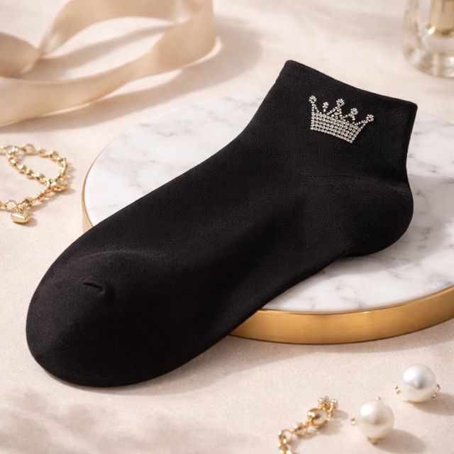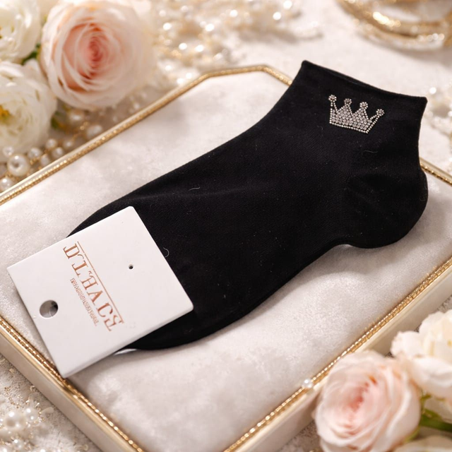 Diese Anklesocken in Schwarz und Weiß mit Strass-Krone bringen edgy Verspieltheit und rockigen Style in deinen Alltag. Aus hochwertigem Materialmix gefertigt (LOVETT Frauen Socken), fühlen sie sich weich, passgenau und atmungsaktiv an. Ideal für Sneaker-Looks mit rebellischem Lifestyle-Feeling, One-Size Gr. 36-42.