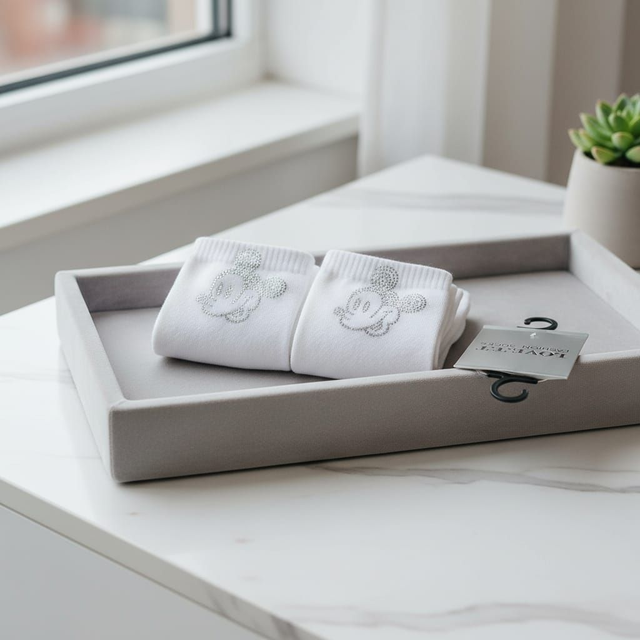 Diese Lovet Fashion Socken mit glitzerndem Strass-Mickey zaubern verspielte Magic in deinen Sneaker-Alltag. In purem Weiß mit funkelnden Mickey-Ohren fühlen sie sich weich an und wecken nostalgisches Disney-Feeling.